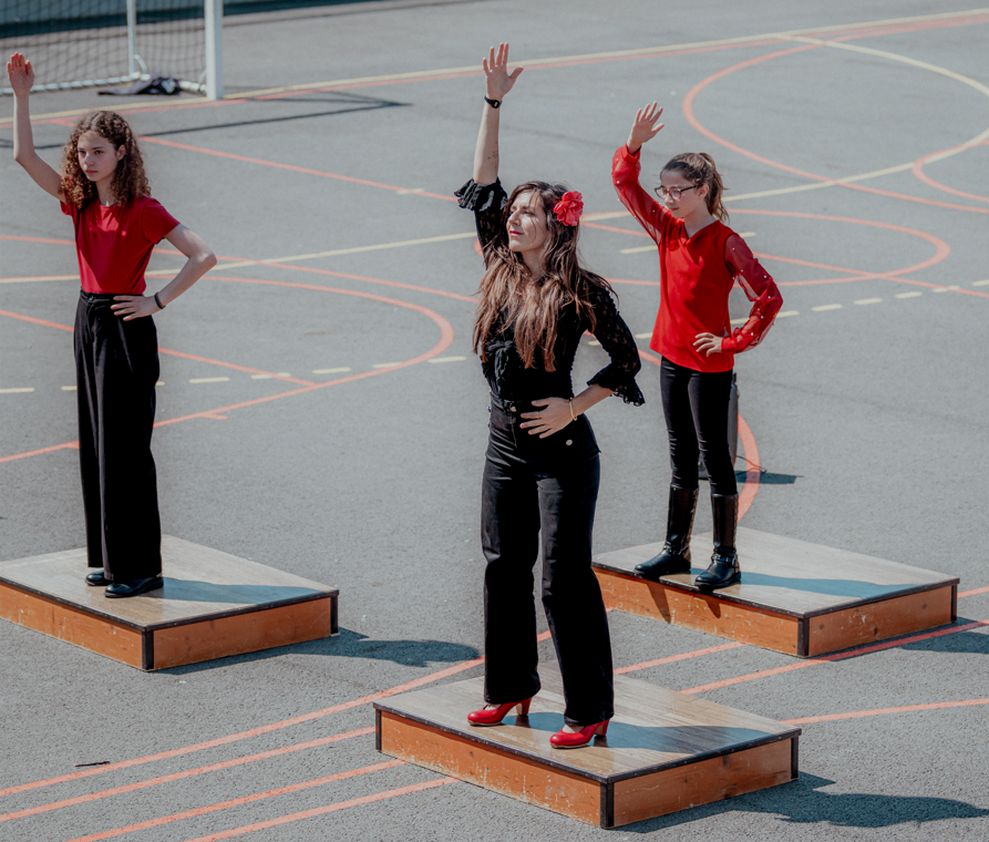 « Une troupe d’une vingtaine de danseuses et danseurs, élèves du collège Jean Richepin à Pléneuf-Val-André, s’entraînent tous les mardis midi. Il s’agit d’un club d’initiation au flamenco qui a lieu une fois par semaine au collège. Il est ouvert à tous, garçons et filles, tous niveaux confondus. La troupe peut ainsi ponctuer l’année scolaire de quelques représentations de cet art andalou, qui est un savant mélange de rythme, d’énergie et d’émotions. Mme Merceron, enseignante d’espagnol, incite les danseurs et les danseuses à lâcher prise, à prendre confiance en eux et à faire preuve d’une certaine cohésion au sein du groupe. Chaque spectacle est toujours un moment très apprécié car il illustre pleinement l’une des multiples facettes du folklore andalou et rappelle que cette tradition se transmet de génération en génération et traverse les frontières. »
