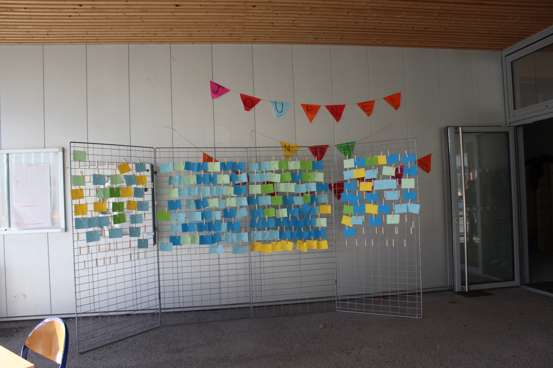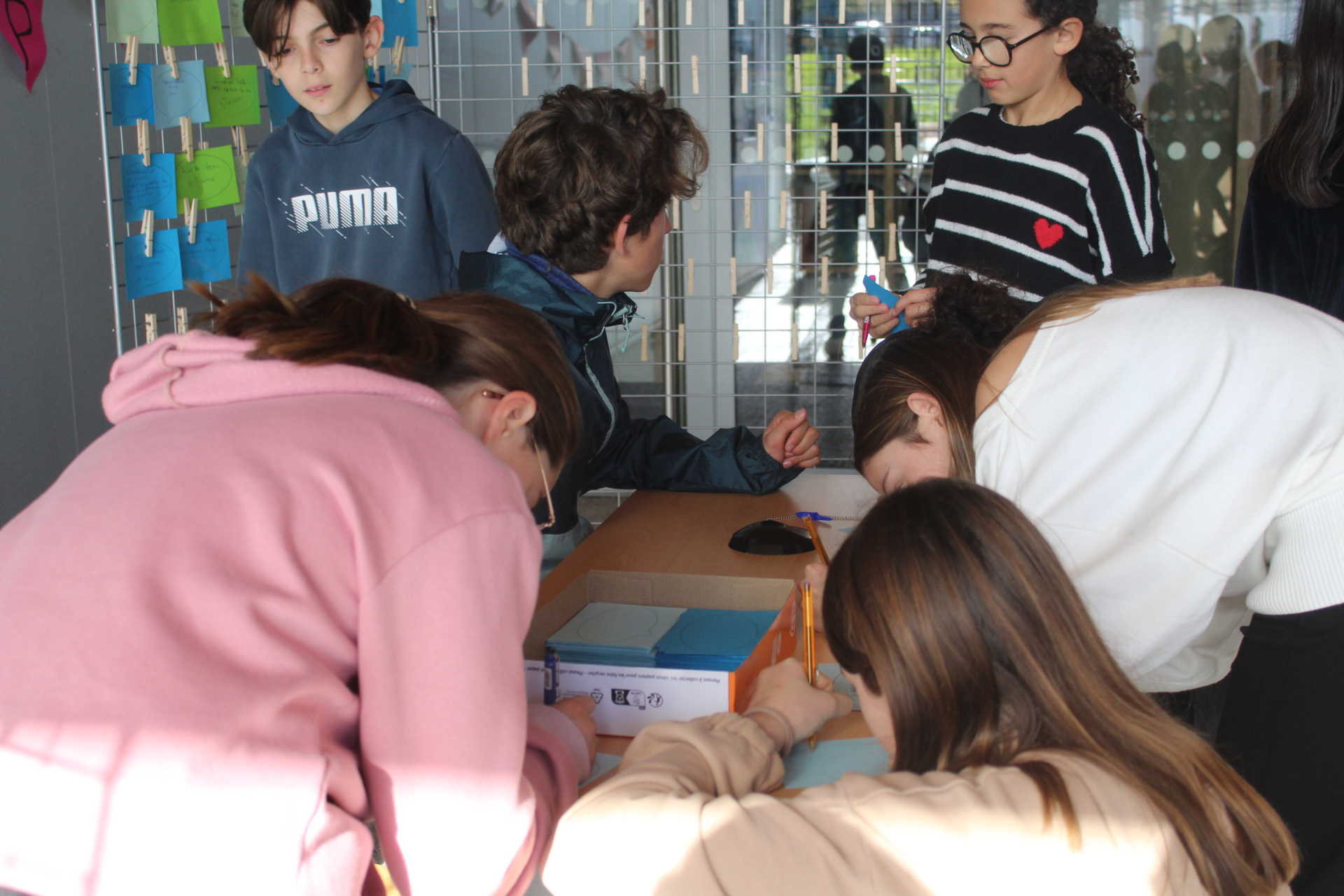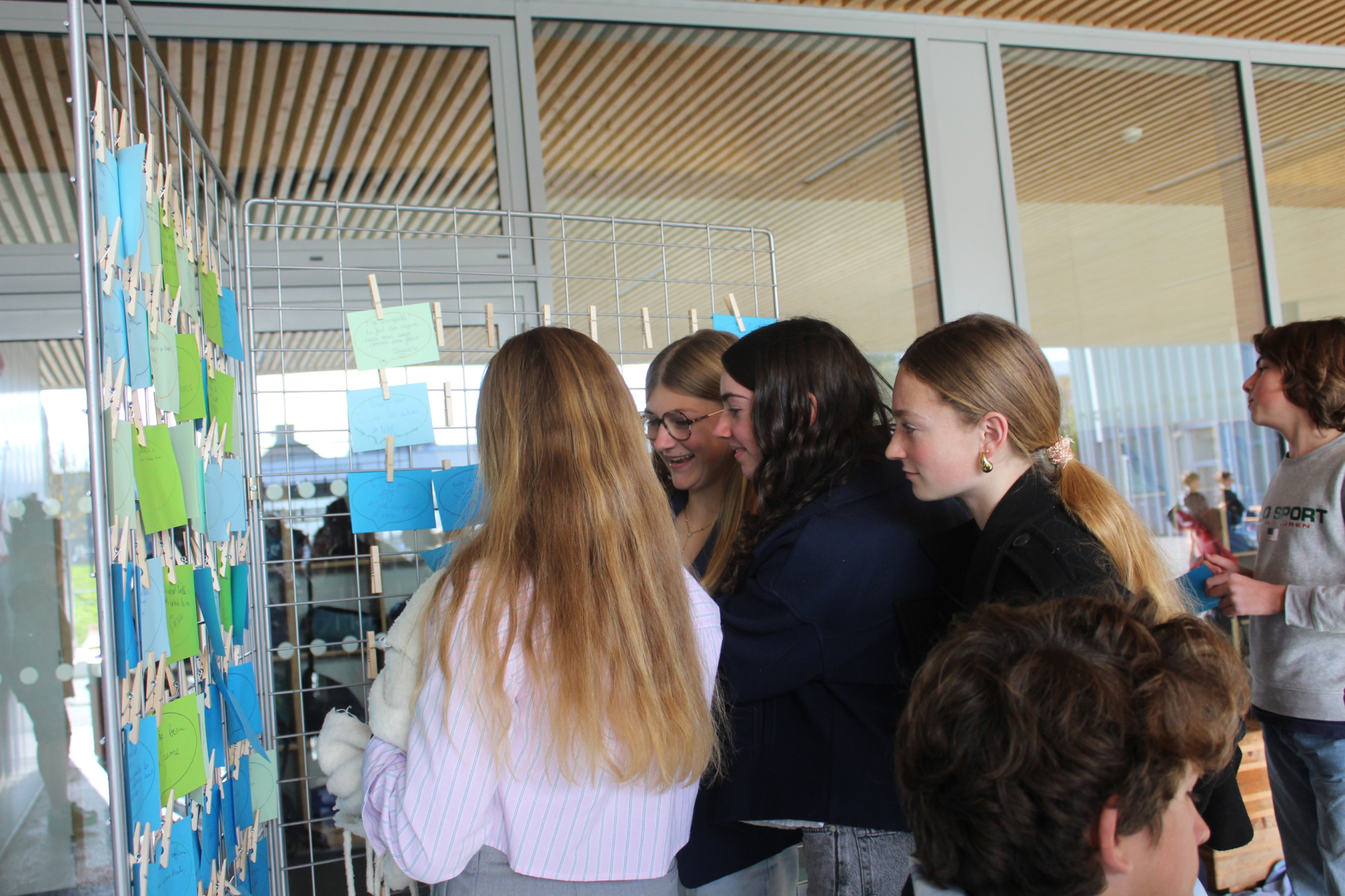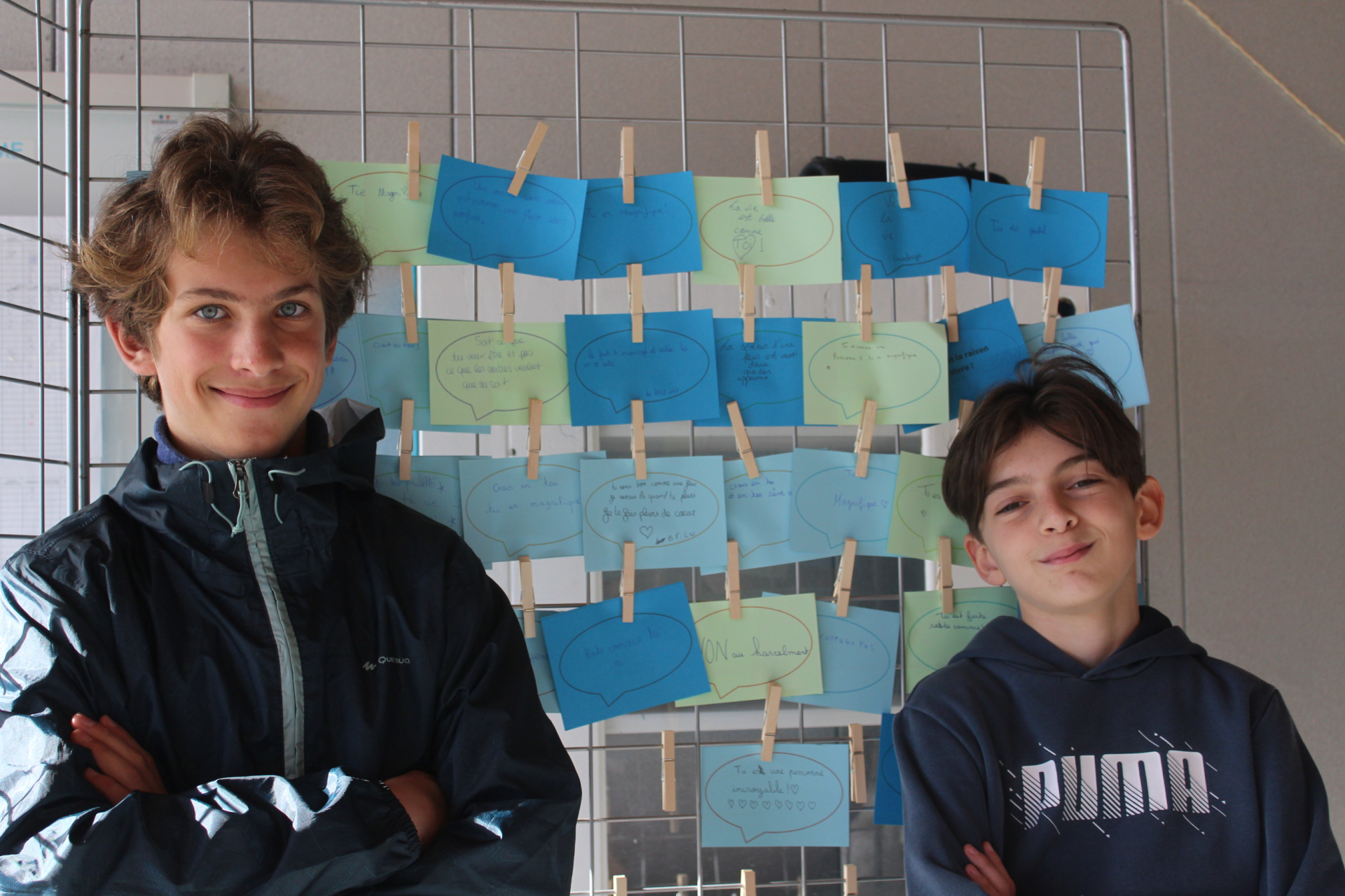 Les ambassadeurs sont formés à plusieurs reprises pendant l’année pour détecter les signes de harcèlement, encourager les élèves concernés à en parler à un adulte, et organiser des évènements de prévention. La journée a commencé par une distribution de petits mots qui font du bien à tous les élèves et les adultes dès leur arrivée au collège. Pendant les récréations, un stand avait été installé sous le préau où les élèves pouvaient écrire et afficher leurs petits mots doux, le tout en musique !